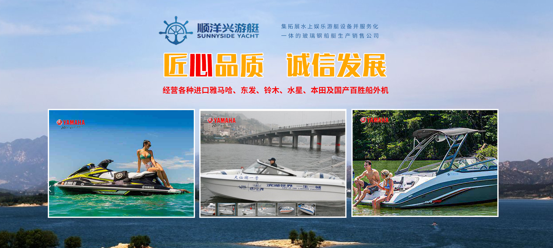 本公司為日本東發船外機中國代理商.雅馬哈.鈴木.水星.本田船外機地區經銷商.并被認定為特約維修服務站。代理銷售國內外各廠玻璃鋼快艇、游艇、釣魚艇,沖鋒舟.橡皮艇.漂流艇.摩托艇.水上浮動碼頭.為客戶專業設計船艇制造.